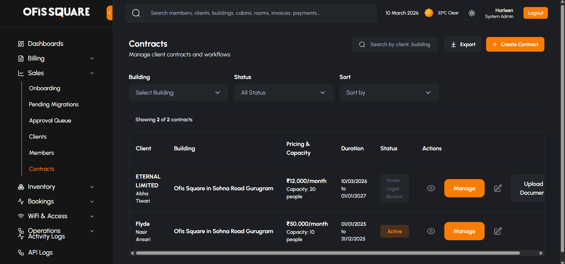 The Admin (Superadmin) Panel is the global command center for the Ofis Square platform. While Community Managers handle day-to-day operations for a single building, the Admin Panel provides ultimate oversight across all locations, financial data, third-party integrations, and complex enterprise contract approvals.