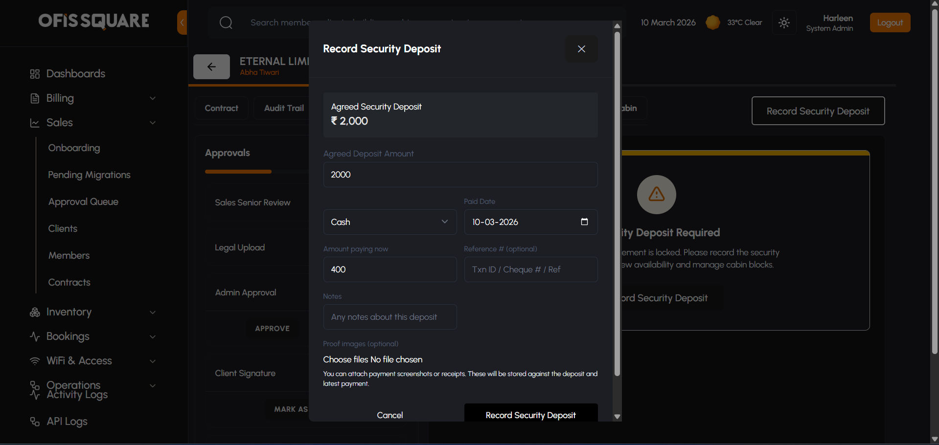 - Record Creation: When the commercials are saved, the system first creates a dedicated Security Deposit record in the financial ledger.